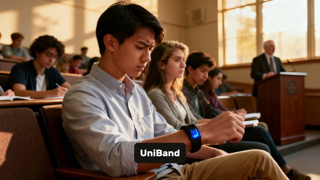 UniBand is an AI-powered lecture recording system that combines a lightweight wearable device with a smart mobile application.During a lecture, the wearable captures high-quality audio. The mobile app then uses advanced AI to automatically convert the lecture into searchable text, generate structured summaries, highlight key concepts, and even translate the content into the student’s preferred language.This allows students to focus on listening in class instead of rushing to take notes, and later review concise, organised study material within minutes.